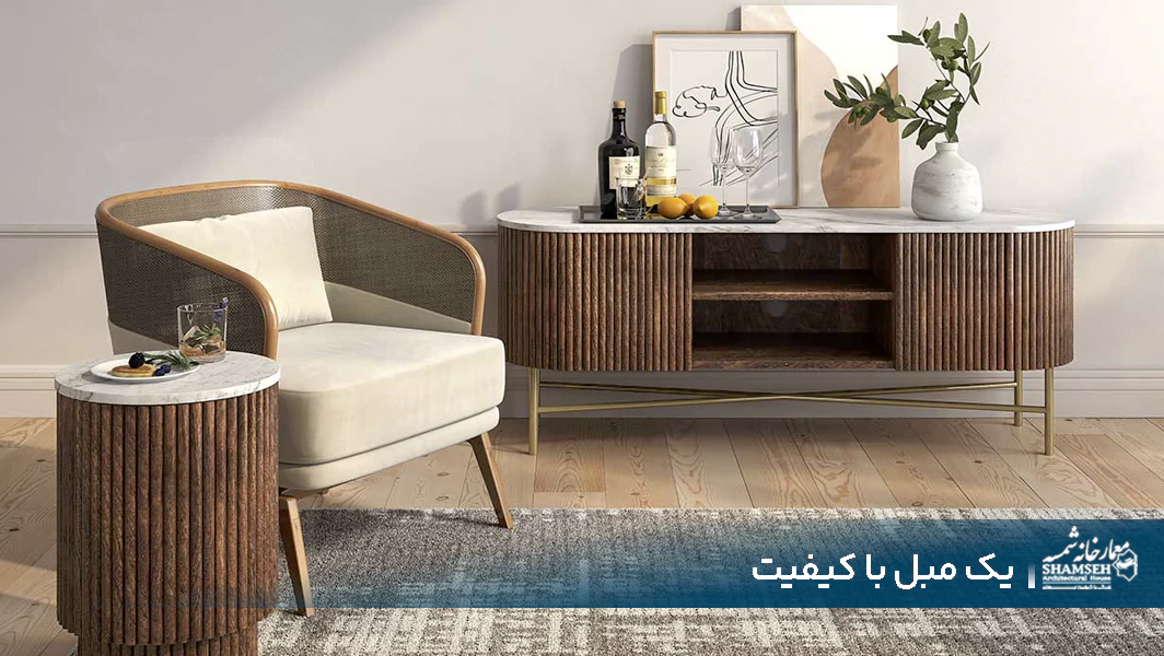 استفاده از مواد با کیفیت: مبل با کیفیت باید از مواد با کیفیت و مقاوم استفاده کند. فریم مبلمان باید از چوب یا فلز مقاوم ساخته شده باشد. همچنین، استفاده از پارچهها، چرم یا مواد مشابه با کیفیت بالا مورد توجه قرار میگیرد.