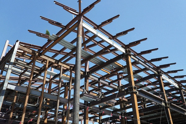 اسکلت فولادی معمولی: جهت ساخت اسلکت فلزی ساختمان تکه های فولاد به اندازه های مشخصی برش داده و جوشکاری میشوند.